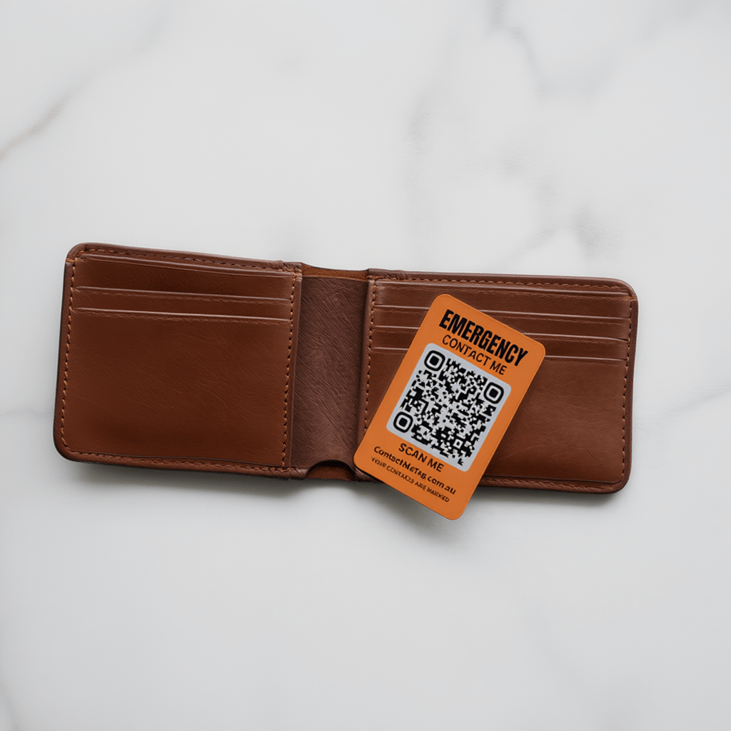 Insert this credit card sized QR Code Plastic Card (PET) to your wallet so someone can contact you or your emergency contact if you ever lose wallet. Designed & manufactured in Australia.